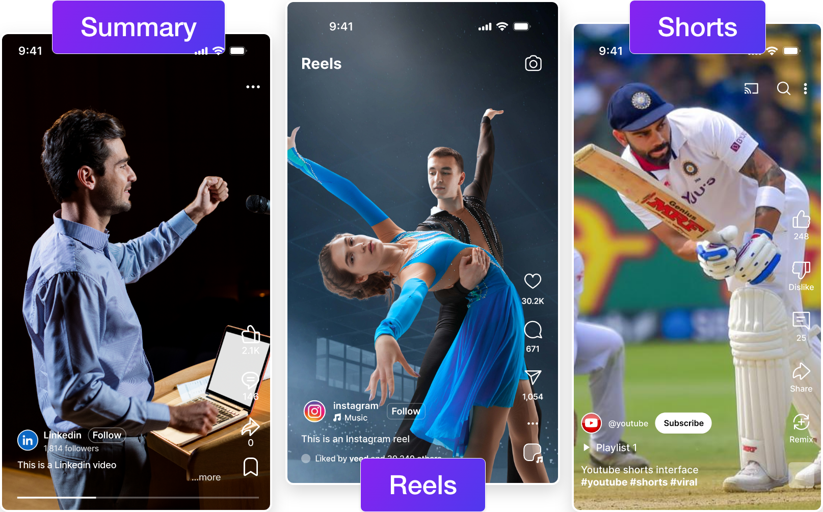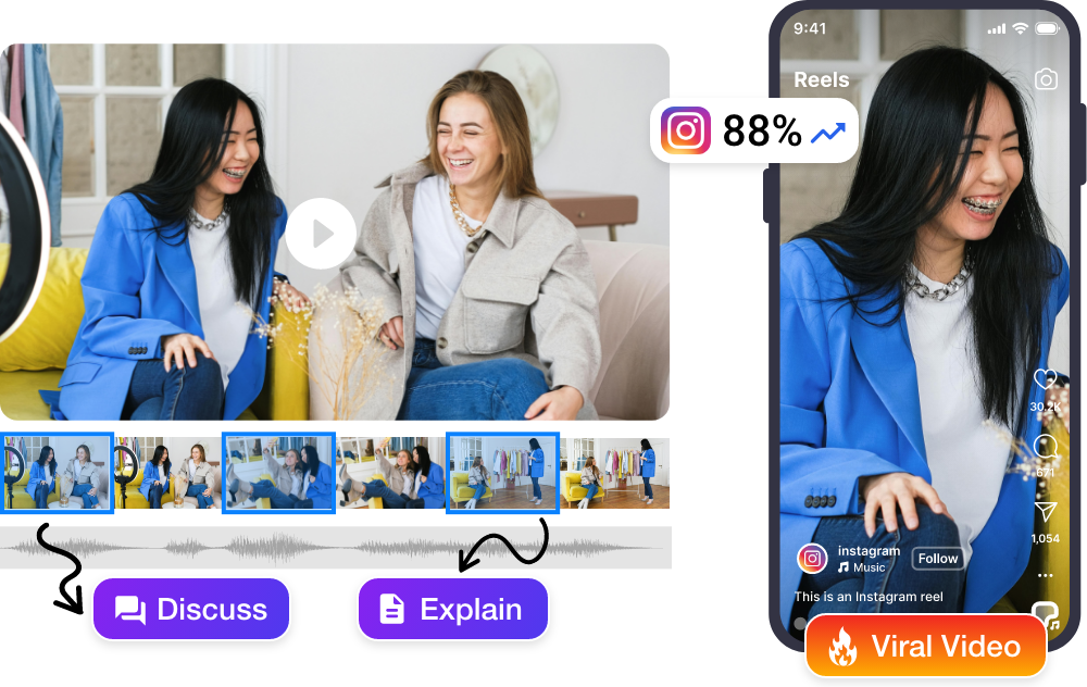 Every clip is automatically optimized for modern platforms. The AI considers aspect ratio, clip length, pacing, and framing—ensuring content performs well on Instagram Reels, YouTube Shorts, TikTok, and Facebook.