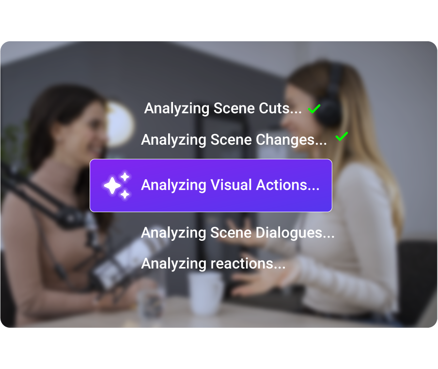 AI Analyzes the video, key moments, characters, and much more. Use AI Analysis for content moderation too.